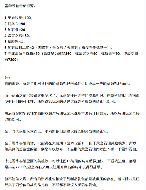 总的来说,就是个相对其他的的资源礼包来说性价比更高一些的资源礼包而已。而小萌新之前已经说过很多次了,无论是任何类型的资源礼包,在战利品礼包面前都没有任何的可比性,所以微氢玩家的话建议优先考虑战利品礼包即可。