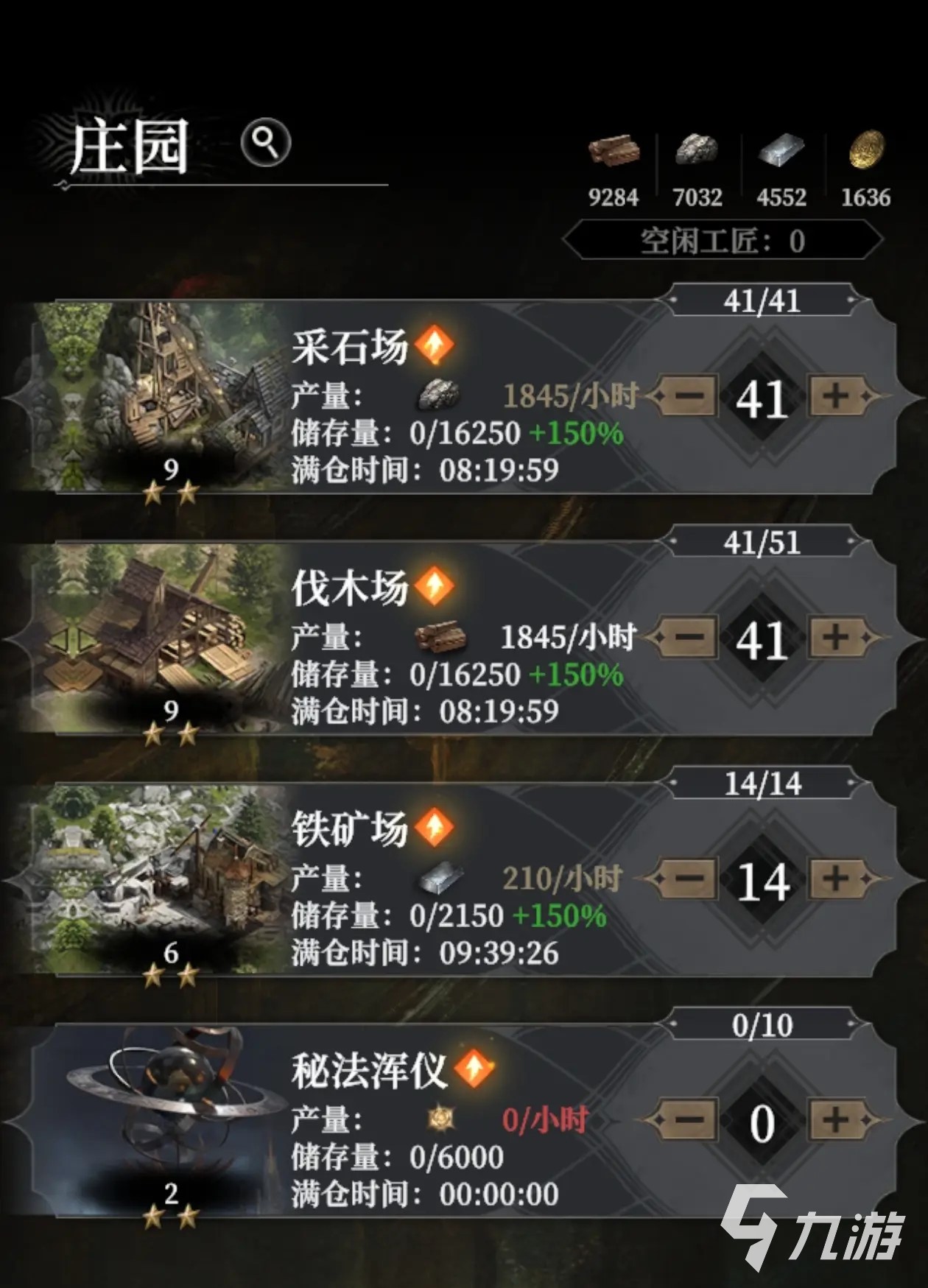 当玩家有足够的工人后就可以大力发展庄园,当下版本版本中状元的等级是40级。当庄园满级时主要的生产也集中在各类铁、矿物资源。建议玩家在开启铁、矿物生产线的同时提升熔炉的等级,不仅能加速铁、矿的产出,而且爆紫装、蓝装的概率也会有提升。只要能出紫装,不管是寄售还是分别都能提升收益。