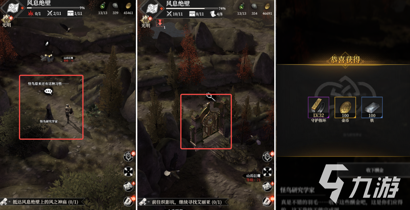 地下城堡4风息绝壁的事件同样值得一提,入口位置与怪鸟研究学家对话后,可以接受寻找怪鸟羽毛的委托。任务的推进需要前往右侧铁门,使用工具或敏捷撬锁进入,击杀其中的怪鸟后就能获得羽毛。将羽毛交还给研究学家,就能领取额外物资奖励。
