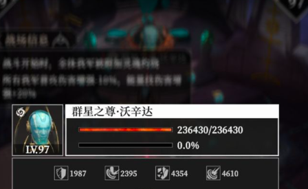 主线的boss虽然说比不了地下城中的boss,但是其强度也绝对够还在推主线的玩家喝一壶了,这其中第一位将要遇到的boss叫做群星之尊沃辛达,这是一位法师定位的boss,他拥有多个攻击技能,这些技能的效果分别为对全场攻击力最高的单位造成一次魔法伤害并且摧毁其150点能量,对所有敌方单位造成一次高额的伤害,该伤害拥有无视护盾的效果,在进行战斗后获得超载状态,提升自身的闪避能力并且持续增加伤害;