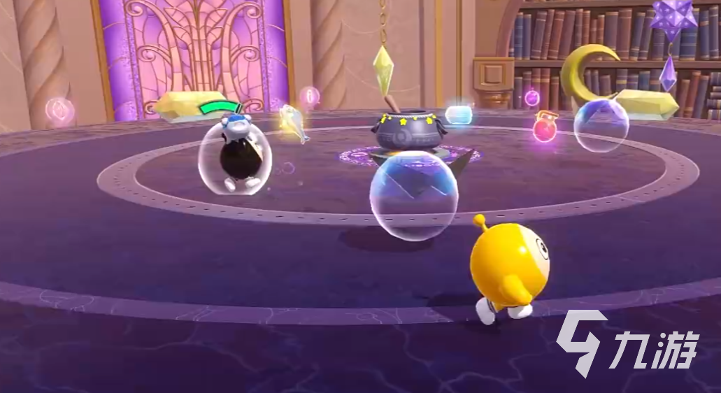 大家需要找准时机,在陀螺面前起跳,这样能帮助跳得更高,率先到达终点的玩家将会晋级,“魔法的坩埚”地图中间包含的坩埚会不断向着周围发射魔法子弹,子弹落地会随机生成追着大家跑的机关,玩家需要运用灵巧的走位来及时逃脱,不然的话就会连续遭遇到袭击,影响到最后的胜负。