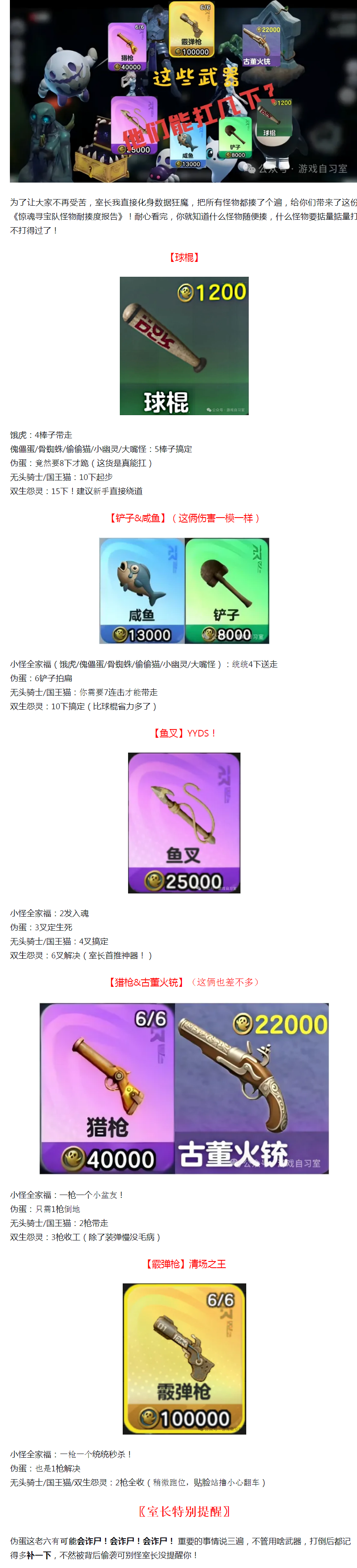 还在纠结带什么武器进惊魂寻宝队?有新手宝子留言说,惊魂寻宝队最近把自己给整破防了,经常抄起家伙对着怪物一顿输出,结果发现自己在给人家刮痧?最后反被怪物送走……室长表示深感同情!