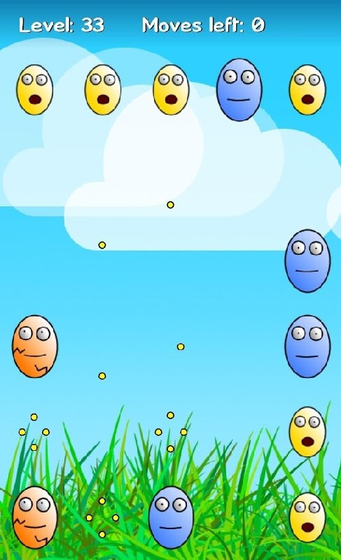 Egg Battle is fun and addicting puzzle game for everyone!You have only one goal. Crack all the eggs on the screen!To do so, tap on an egg to break it and to let it shoot out a "pop" in every direction to hit other eggs.Sounds easy, right? But beware, your moves are limited and some eggs need more hits than others.So tap wisely.Have fun!made with love2d