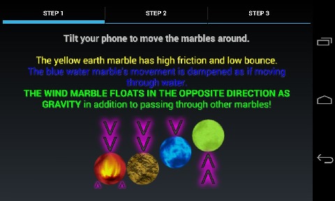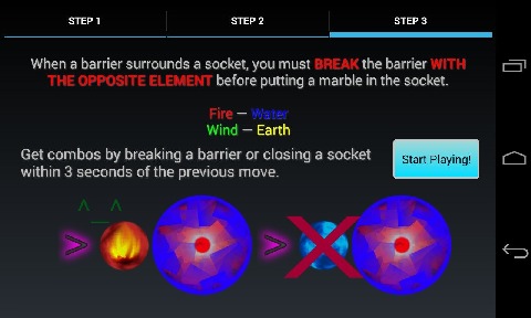 Earth! Fire! Wind! Water!ACTION PACKED marble rolling that will BLOW YOUR MIND probably!This is a puzzle game that is awesome to the power of rad. Roll your elemental marbles ("Elemarbles", get it?) into sockets of the same element. Beat the game by clearing 10 rounds of this. Easy to start? YES! Easy to master? NO WAY! You are to be THIS AWESOME to ride this game.