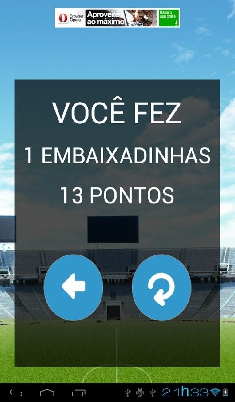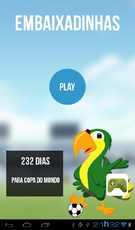 Ajude o papagaio a fazer embaixadinhas, um jogo simples e divertido!Faça embaixadinhas com o dedo!Quanto mais embaixadinhas você fizer e quanto mais longe você lançar a bola mais você pontua!Acompanhe quantos dias faltam para a copa do mundo de futebol através de um contador!