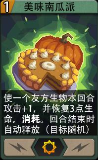 初始道具:献祭后,衍生1张[美味南瓜派]加入手牌。