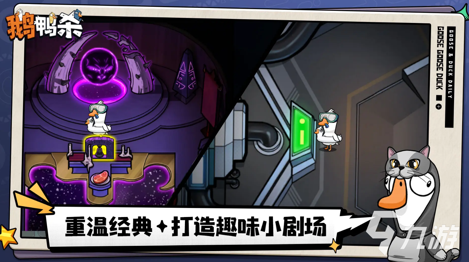 并且其中也是带来了多种不同阵营的选择,比如鹅阵营需完成任务或是投票淘汰全部鸭子来获胜,并且侦探可调查玩家杀戮记录、观鸟者能穿透墙壁观察动态,正义使者则是拥有限定次数的处决权,而鸭阵营也就是坏人,它们的目标是消灭所有的鹅,其中不同的职业具备技能方面也是各有差异,比如专业的杀手在成功击杀后尸体仅对特定阵营才能看到。