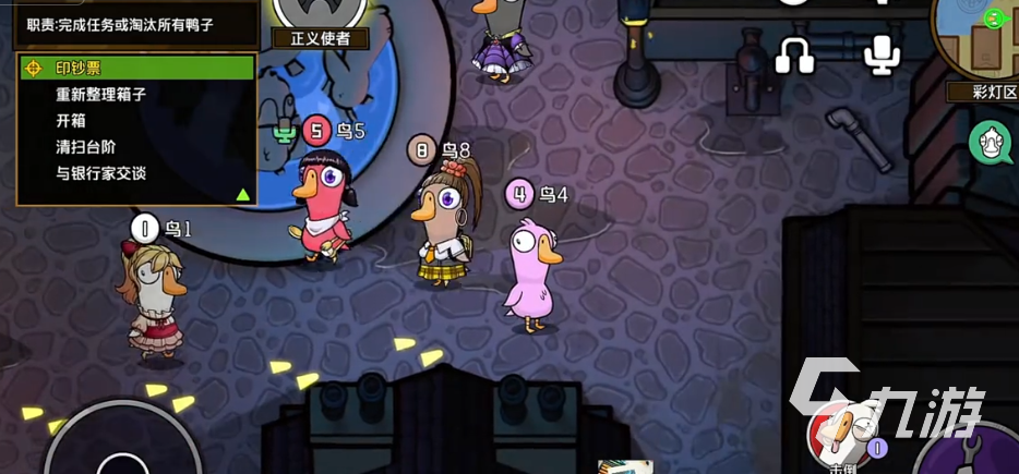 除了找凶手之外,做任务也是一个重要的目标,地图上会有很多的任务点。鹅在完成这些任务时就可以推进任务的进度,只有把所有的任务做完,那不管鸭子还在不在,鹅阵营都可以直接获胜。但鸭子也会有对应的手段,他们可以做一些破坏任务,例如捣乱地图的某一个区域。主要的目的就是制造混乱,让鹅没有办法去安心的做任务,与此同时还可以趁乱刀人。另外要注意的是鸭子也可以去做鹅的任务,但是所做的任务根本就不会算数,没有办法推进进度,只能够掩人耳目。
