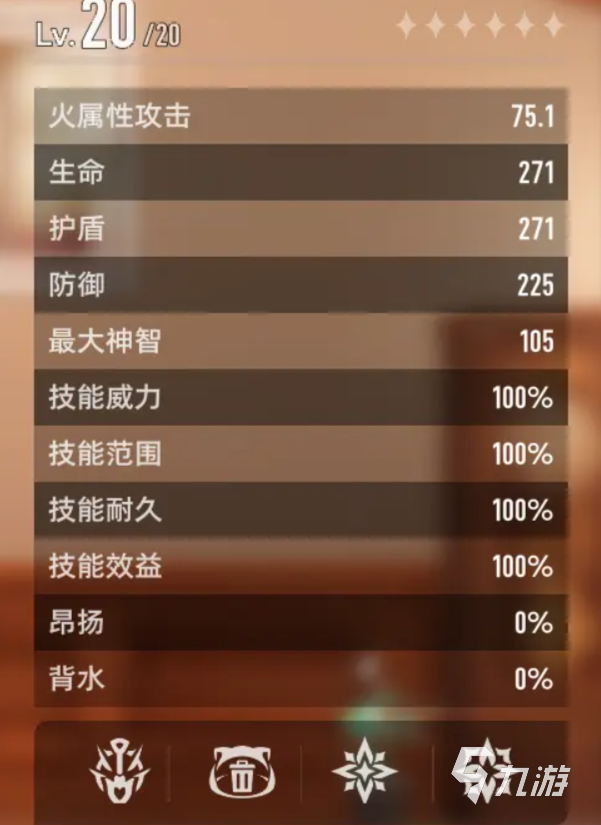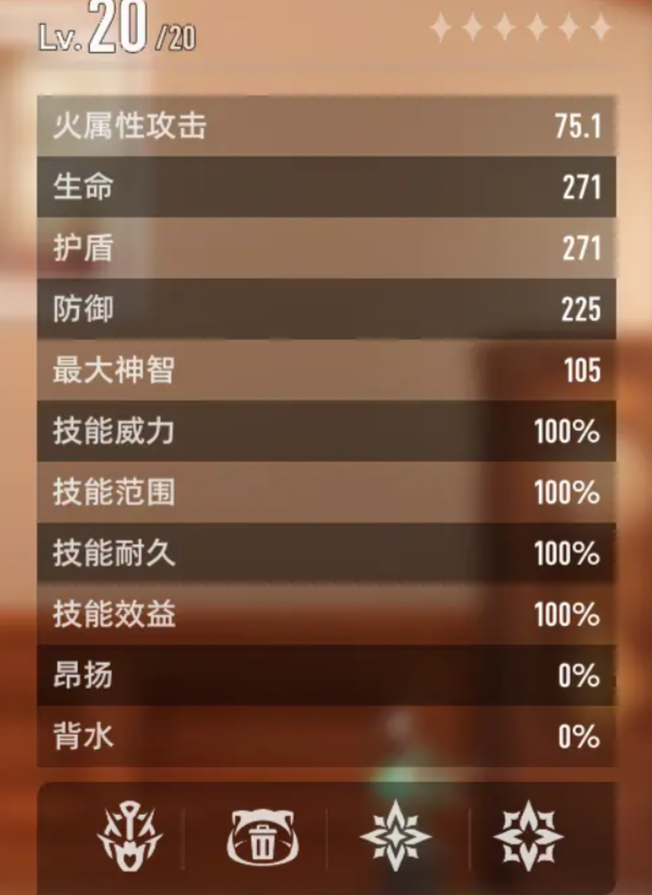 初始这个数值是20,每升1级都会增加1点,最多可以加到100点,并且随着等级的提升,还会增加定量的攻击、血量和护盾值,然后是槽位,初始会有4个可放置的槽位,每20级就可以突破一次多获得一个,最高突破到100级也就是5阶时,能获取到全部的槽位。