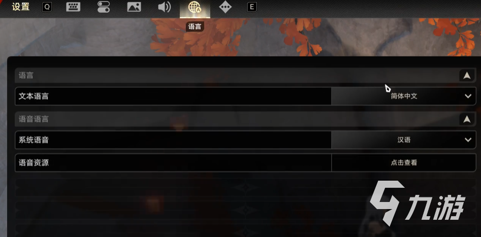 注册登录刚进去游戏是只有中配的,得等到了可以调整设置选项(ESC)之后才能调整语音。如图所示,在设置界面的第五项“语言”这一栏中,最下方的有一个“语音资源”,点开可以看到有四个候选,默认中配已经是有的了。