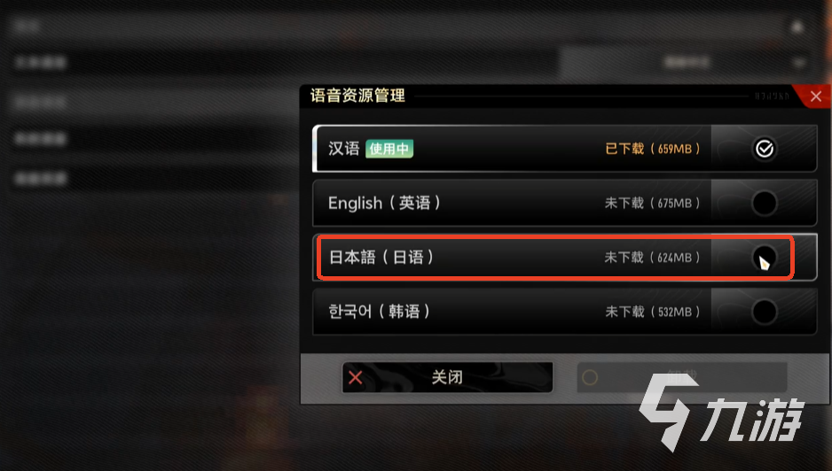 然后可以选择下载日本语配音,有624MB大小,点击下载,如果下载了多个不想留也可以卸载。注意这里只是下载选项,并不是启用日配选项。下载好了还需要在其它地方操作调用日配。