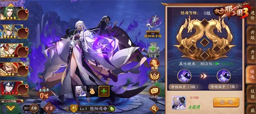 【阴阳司命】作为链魂武将,在激活之后将默认为白金资质,可以与初始资质不低于15的任一武将进行链接,无论是与15/16资质红色武将进行普通链魂,还是与初始资质金色的武将进行高级链魂,均可继承链接武将的等级,星级,阶数,无需培养一键养成!