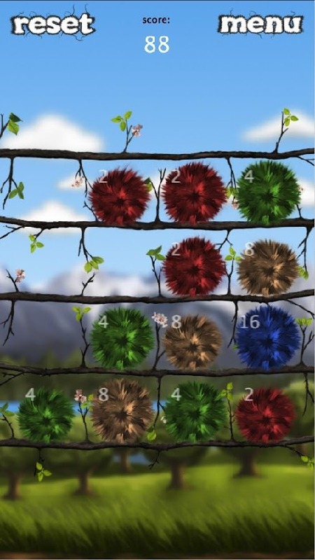 Swipe the screen to move all the furry balls in the same direction. When two with the same number and color ash togheter, they merge into a new one and you scor...