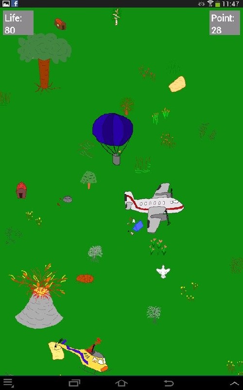 Simple 2D game, fly the bird through the landscape and avoid obstacles. Watch the Life level as it drops while holding the bird. As time runs, speed increase an...