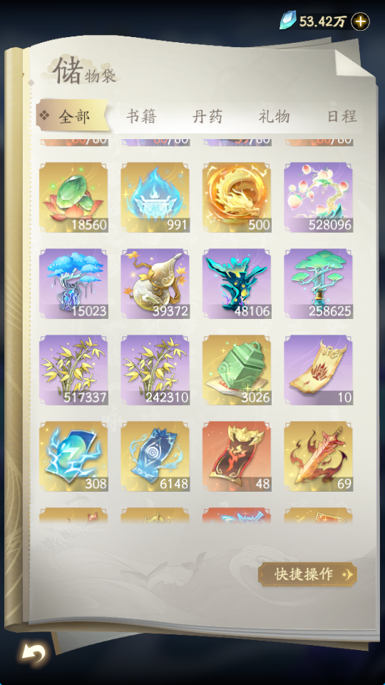 还一个就是囤资源了,因为每天都有不同日常活动,比如兽渊,魔道,虚天,炼体,丹药,送花等活动,可以专选几个做为强项,一直囤这方面的资源,到时日常活动更容易拿第一拿到法则。