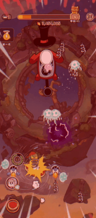 2.帽子戏法来了,克洛诺斯摘下魔术帽,使用魔术棒轻轻敲击,竟然从帽子中变出大量旋转球形弹幕;