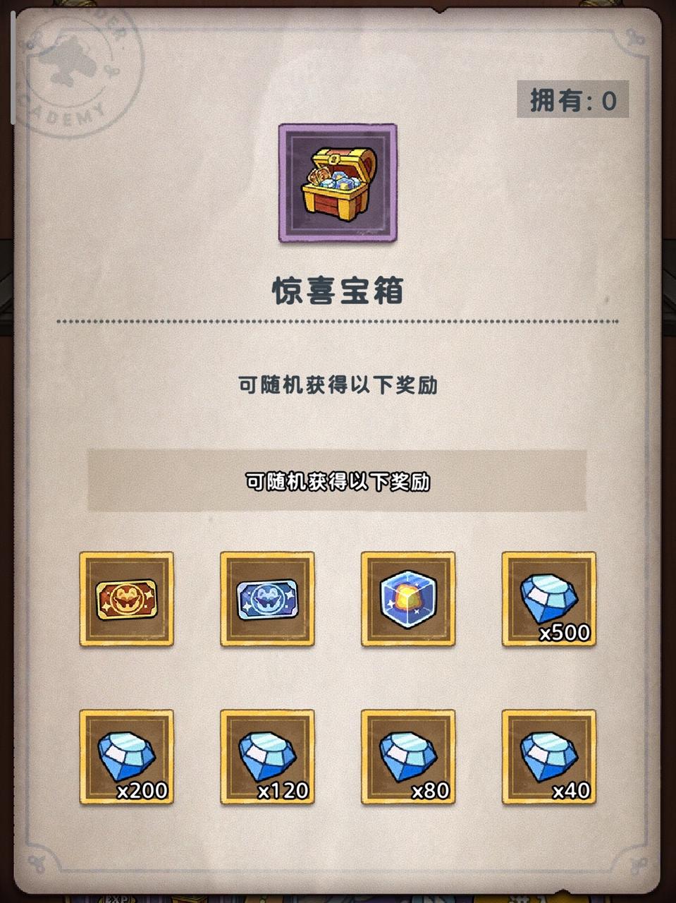 ② 惊喜宝箱(有几率开出王牌招募卡、飞行学员招募卡、能量核心、钻石等奖励!) ③ 金币、经验汽水、装备图纸