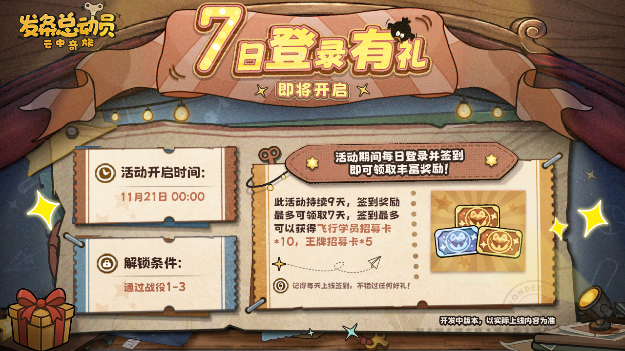 七日签到送:王牌招募卡、飞行学员招募卡。