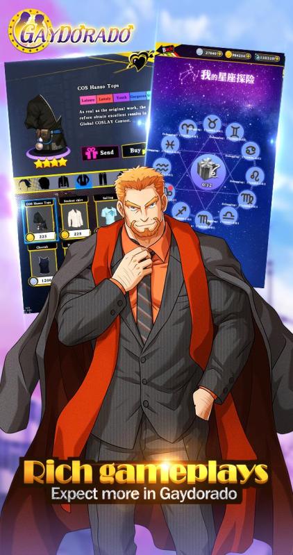Gaydorado是一款面向LGBT同志人群的小說式交友換裝RPG遊戲,遊戲內每個角色都有獨特的故事線,當然體驗豐富劇情的同時,也可以在遊戲內和其他真實的玩家交友,比拼大家的時尚穿衣style,結識更多朋友! -同志專屬故事線,小說式劇情體驗 遊戲內有不同類型的同志角色,也包含了他們之間獨特的故事,其中既有浪漫情節,也有刺激的動作場景,隨著解鎖越來越多的角色,更可以體驗豐富浪漫的小說式劇情。 -時尚個性服飾,展示個人風格 既然是一款社交時裝RPG遊戲,那就少不了多樣的時尚元素,Gaydorado裡面含有上百種時裝可供玩家搭配選擇,可以裝扮成學生,設計師,工程師,甚至消防員等等。盡情展示想像力和個性style吧! 如果Gaydorado裡沒有中意的衣服,也可以聯繫Gaydorado的Facebook粉絲團分享想法!說不定可以被選入遊戲! -豐富遊戲體驗,滿足所有需求 除了多樣時裝和豐富故事情節之外,Gaydorado裡還有Gym可供玩家提升戰鬥力,PVP競技場展示力量,和遊戲內不同的角色約會和更親密接觸,更有即將上線的結婚系統,可以讓兩個真實的玩家互相認識,並組建自己的幸福家庭! -最重要的是 Gaydorado希望可以幫助LGBT同志人群在遊戲內和現實生活中找到自己真實的另一半,可以為同志人群提供一個良好的健康的社交娛樂平臺。 遊戲內容: -LBS定位:與附近玩家真實互動 -全球聊天室:結實全世界圈內朋友 -獨特的故事線:通過關卡和戰鬥解鎖劇情,體驗豐富浪漫的小說式劇情 -Gym系統:通過健身和訓練來提供自己的戰力 -PVP系統:和其他玩家比拼誰更的style更獨特 -親密度系統:與遊戲內的玩家角色更親密接觸 Gaydorado Facebook粉絲頁:https://www.facebook.com/Gaydorado-431511437232125/ Gaydorado Email:gaydorado@service.cocobear.games 官網:gd.cocobear.games QQ群:207084086