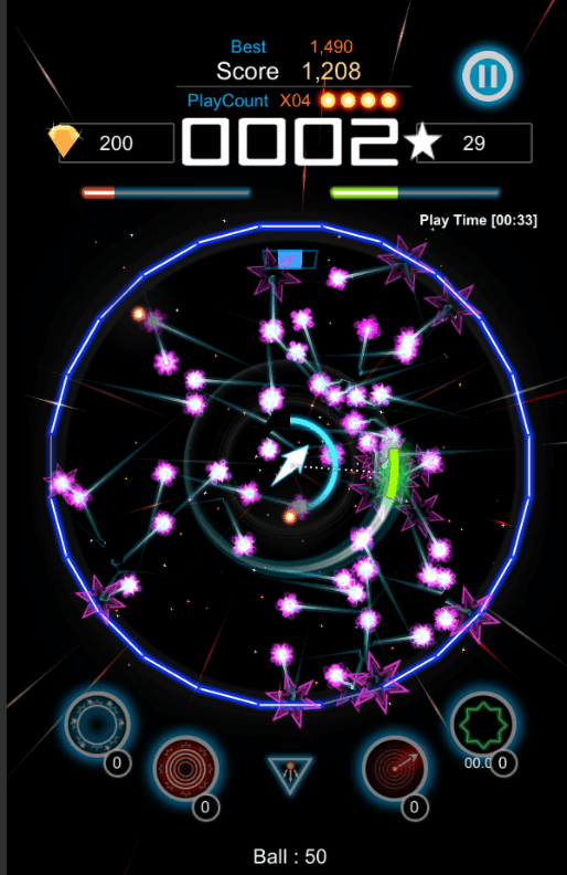 야광원 - GlowCircle ( '글로우 서클' )둥근 원형의 벽돌 격파 게임으로 디펜스 게임과 조합 하여 신선하고 새로운 형태의 벽돌 격파 게임 입니다. ▶ 마치 폭죽이 터지는 듯한 화려한 연출 ◀ 스타워즈의 향수와 불꽃놀이를 보는 듯한 게임의 디자인 ▶ 캐쥬얼 게임에서 얻기 쉽지 않은 타격감 ◀ 블록이 존재하는 영역에서의 컨트롤이 가능 하며, 게임 중 많아진 케릭터에 기다리기 지루함을 볼 불러드리기 기능으로 빠르게 ▶ 지루할 틈 없는 게임의 합체 ◀ 원형의 테이블 안에서 가운대로 다가오는 블럭을 격파하고 디펜스 게임을 합쳐 볼을 쏘고 난 후에 심심하지 않게 피버 모드로 별을 빠르게 모으고 많은 볼을 쏘자! ---- 개발자 연락처 : 010-9780-1222 - Tutorial 추가