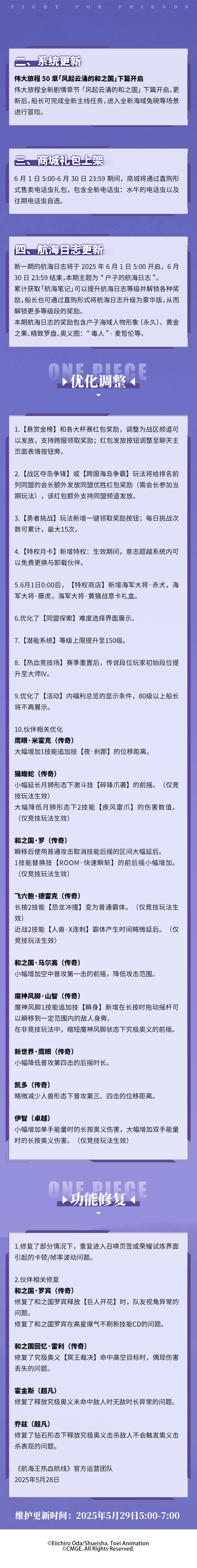 手机游戏> 航海王热血航线> 游戏新闻> 5月29日例行维护公告