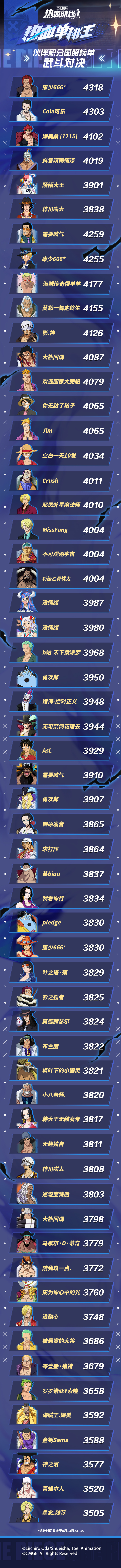 手机游戏> 航海王热血航线> 游戏新闻> 双模式齐开!热血单挑伙伴积分国服榜单发布!