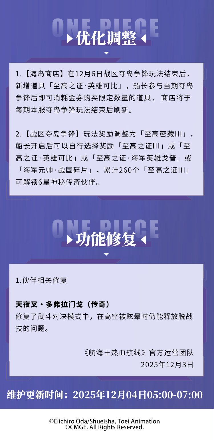 手机游戏> 航海王热血航线> 游戏新闻> 炎帝萨波登场!12月4日例行维护公告