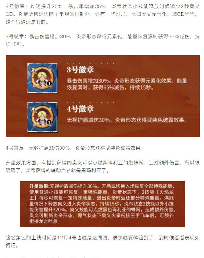 手机游戏> 航海王热血航线> 游戏新闻> 【攻略分享】【炎帝萨博】徽章效果给出,配合大蜘蛛的