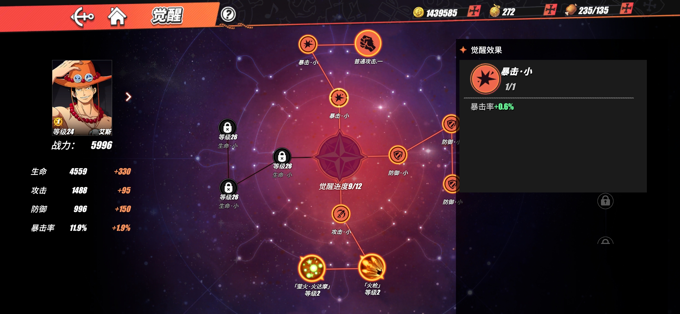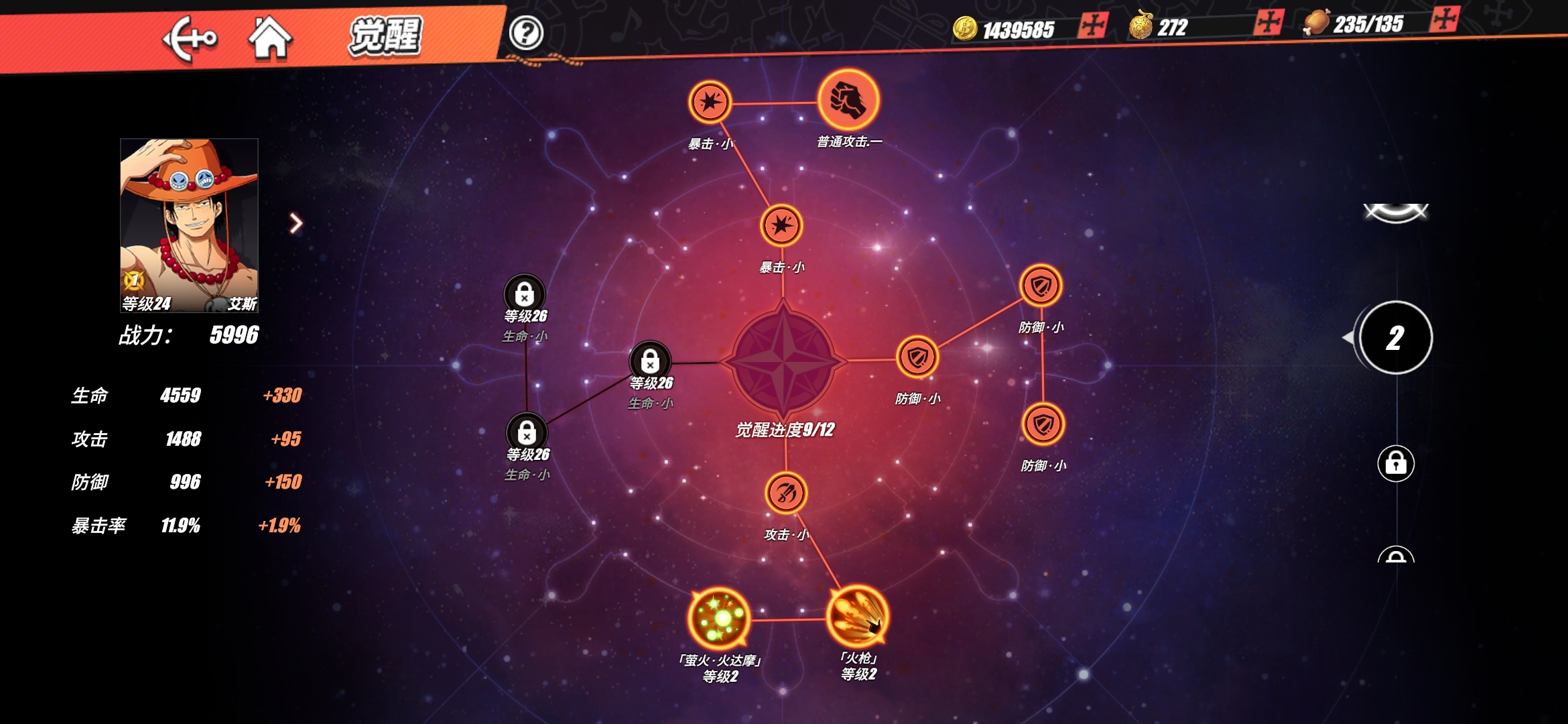 技能方面的话,觉醒技能提升一级伤害会提升10%,山治的觉醒技能伤害还是比较高的,所以放在第一优先级。【违反礼仪之踢】是山治的主要先手技能,所以放在第二优先级,其二段技能的攻击范围很大,是实战当中的主要输出。
