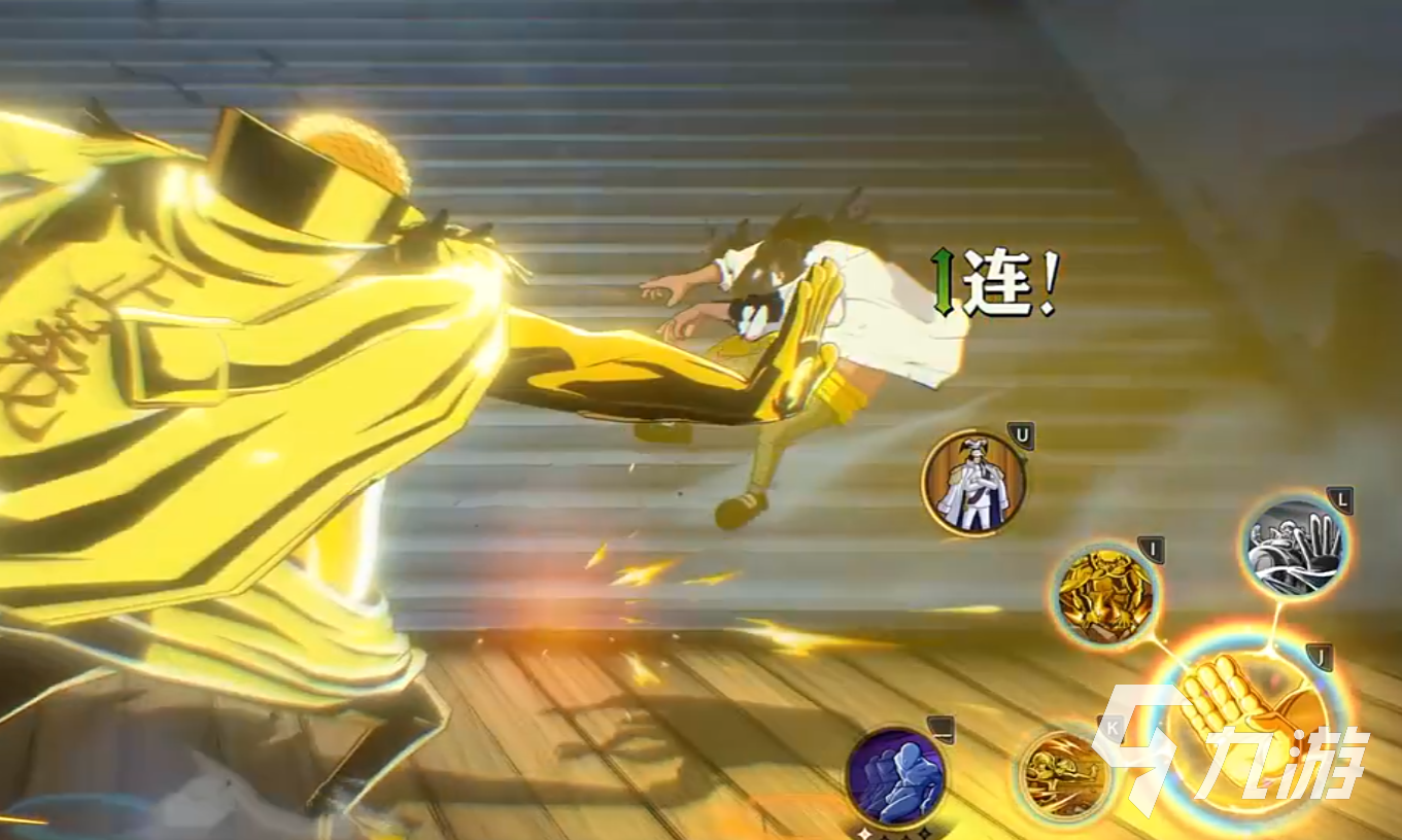 战国在常态下普攻有5段,1、2段是左右手的快速拳击,3段会大步撞飞对手,4段是左手下勾拳,第5段飞踢终结,实战长按普攻可进入快速连打模式,此时的攻击自带拳风,他的常态1技能短按会正步向前打出拳风,长按则是跳起后向斜下方打出。