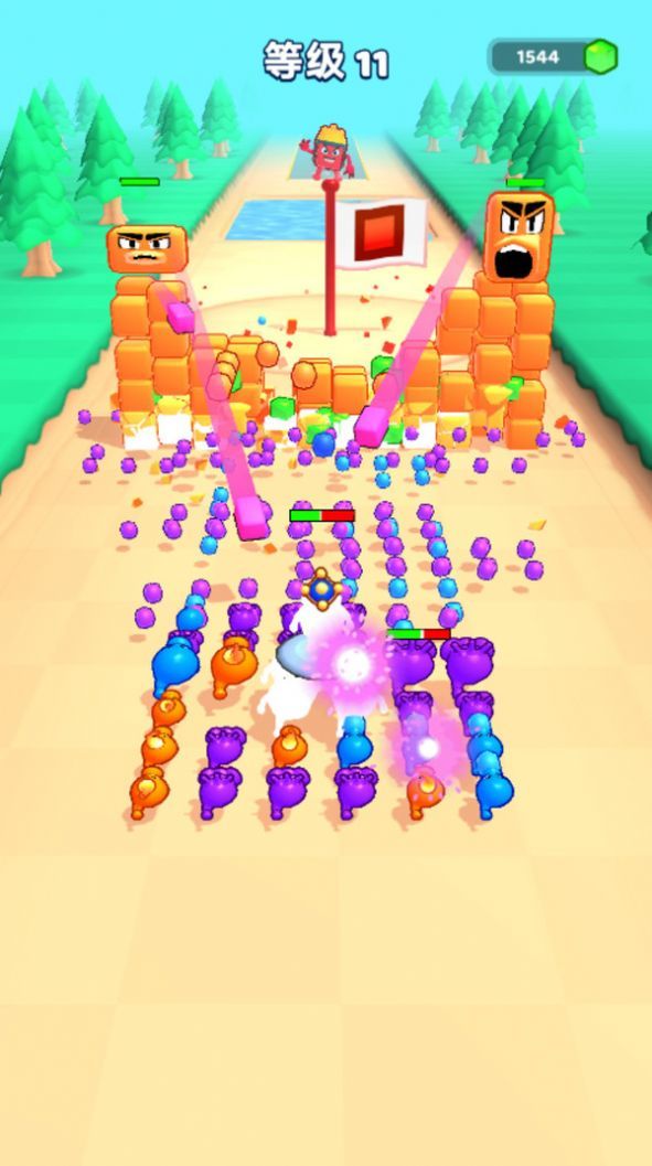 合并升级对决一款融合了合并和塔防类玩法的策略游戏,在游戏中,你可以通过将相同的物品合并起来,从而制造更加强大的武器和防御措施,来应对来自对手们的攻击,同时,你还要在自己的领地来布置各种防御设施,比如炮塔,陷阱等,来保护国王不受敌人的侵袭。