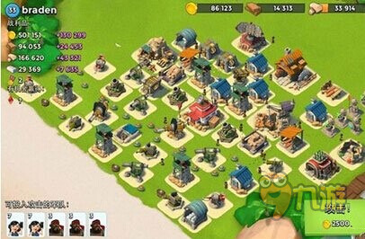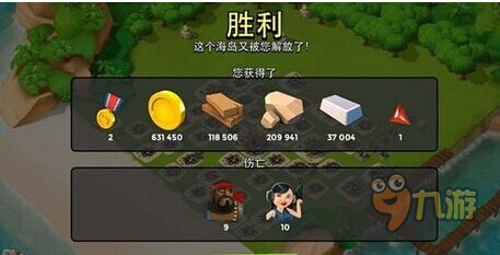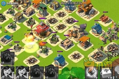 本人比较擅长的胖子MM流,极限的攻击距离,胖子硬抗推进,关键安全点的走位,无视了对手一半的防御,防守为主的玩家不郁闷么,奠定了这次胜利。33级海滩阵,2个大加农炮和火箭炮是重点,这应该是个主防御的玩家,船才8级,狙击塔11级,迫击炮7级其他的没记住。