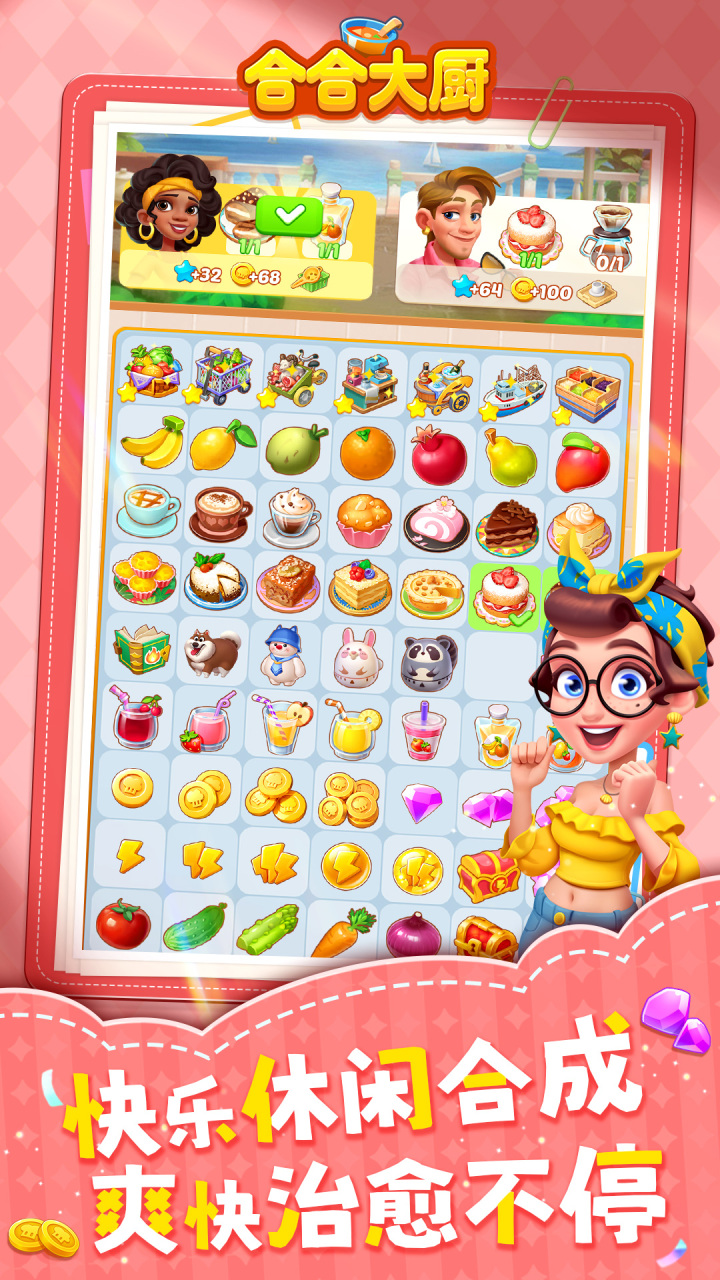 《合合大厨》:开启你的环球美食之旅!【你是否知道,足不出户也能尝遍世界美食?】【你是否了解,只需简单几步就能掌握烹饪奥秘?】系上围裙,戴上厨师帽,在《合合大厨》中,你可以烹制世间万物!● 欢迎主厨登场!你的助手莉娅正等待你开启环球开店之旅。在这里你不仅能化身星级主厨掌控世界料理,更能实现设计师梦想,亲手改造米其林餐厅!● 开启美食巡礼!在纽约享用班尼迪克蛋,到曼谷畅饮冬阴功汤,于东京手作寿司,去巴黎细品法式蜗牛...《合合大厨》带你逐城探索!每日解锁一道世界名菜,发现更多刺激挑战的食谱来精进厨艺。丰富的地域美食——墨西哥塔可、中东烤肉、日式拉面等应有尽有。多样的餐厅主题——快餐店、烧烤吧、海鲜坊任君选择。● 玩转食材魔法!只需点击-拖拽-合并三步操作!顶级美味皆由基础食材幻化而生。借助七种趣味厨具烹饪:煎锅让你告别焦糊牛排,榨汁机现打清新饮品,烤箱烘焙完美派饼,调酒器摇出梦幻鸡尾酒...模拟真实烹饪过程,体验欢乐备餐时光!● 突破味觉想象!马苏里拉奶酪、山核桃、椰子、龙虾、香槟...成为世界名厨所需食材这里一应俱全。合成它们喂饱饥肠辘辘的食客!随着游戏进程发现更多惊喜,收集好莱坞明信片等特色纪念品,让你的旅程充满回忆。● 每道风味皆有故事!没有什么比美食更能联结人心。认识那位兼职足球教练的美式餐厅老板,邂逅优雅又挑剔的法国经理人,迎接形形色色的顾客。倾听他们的故事,也书写属于你的传奇!在《合合大厨》你将:√ 合并水果蔬菜奶酪,解锁上百种食材√ 烹制异国奇幻料理,畅游多国美食圣地√ 模拟真实厨具操作体验√ 用新颖设计改造餐厅√ 提升厨艺掌握全球食谱√ 轻松享受美味无时间压力√ 领取超值奖励与礼物√ 沉浸体验无穷乐趣《合合大厨》——万物皆可烹!