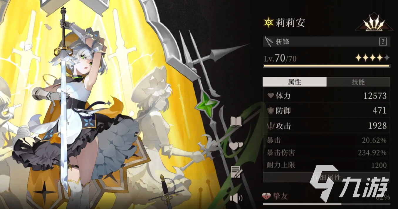 莉莉安的普攻会连续攻击5次,在怪物击倒状态下运用可额外回复耐力,她的“除恶”会将剑举到自己的身前,对四周范围内的敌人打出多段伤害,最后高举剑打出致命一击,她的“盛放”会让自己的生硬原地消失,在前方位置划过一个剑阵,在消失的期间自己不会受到伤害,她的“突刺”会拿着剑想前方突刺攻击,形成一定输出,命中敌方破绽能得到“开刃”,她的大招会召唤出多个分身,并在地面上形成发光图案,分身会在瞬间发动多次攻击,消失后本体会快速冲刺,并让图案消失带来巨大的伤害,此时刃心的阶段可以带有不同幅度的伤害提升。