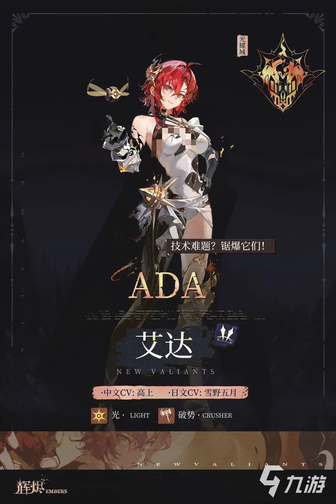 辉烬艾达怎么样?艾达这个新角色的外形设计是比较具有吸引力的,精致的面庞配上红火的短发,看起来性感又干练,她是全新光属性破势角色,战斗风格也是十分的暴力,很多小伙伴都对这个角色有十足的期待,本篇也是整理了她的技能相关情况,在下文中做出详细介绍,一起看看吧。