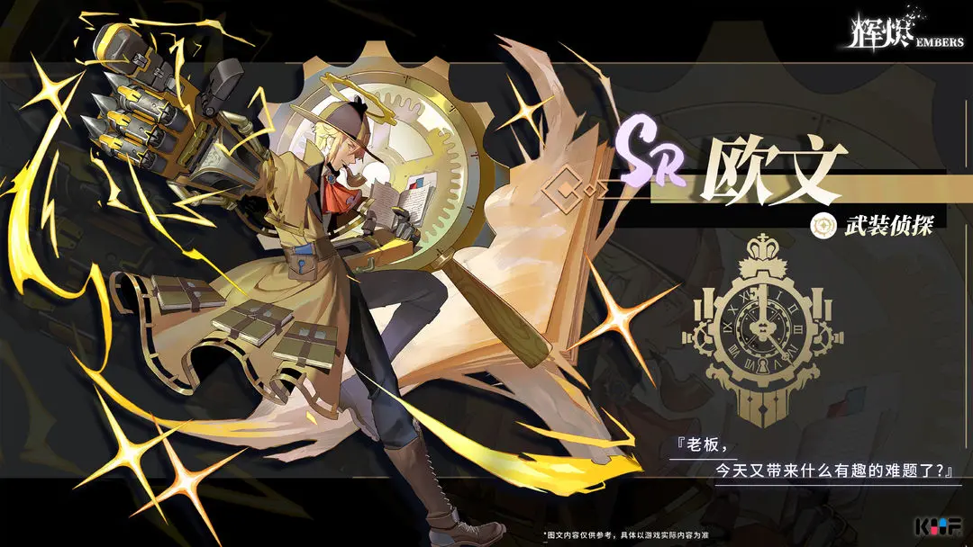 辉烬武装侦探的名字叫做欧文,他在游戏当中的身份是万事通侦探社的社长,由于其出色的探案能力,所以他受到了很多人的委托。并且欧文的工作方式和其它侦探有比较大的差距,...[详情]