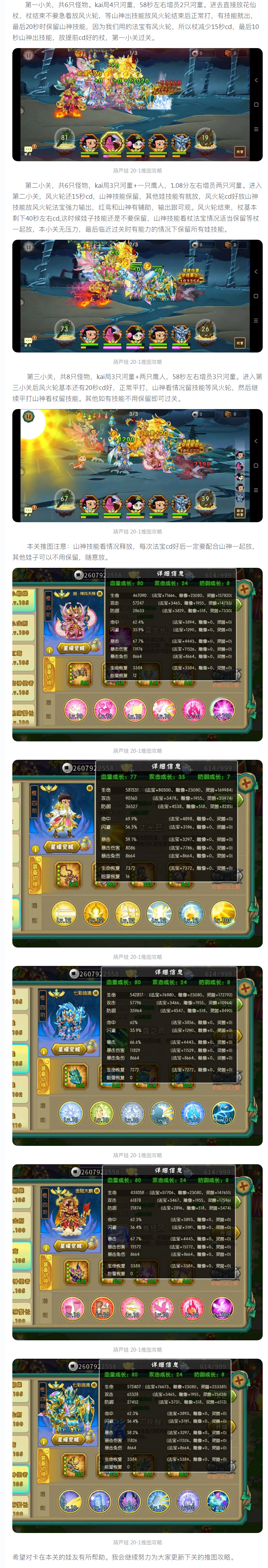 随着葫芦娃游戏七年的成长,20章推出也有一年了,不过20章与前面章节不同,出现了法宝助阵怪物的新挑战,难度提高了不少,成为了众多娃友的拦路石。我侥幸过了几关,今天就先给大家分享一下我20-1过关属性和心德,希望能帮助一些娃友。