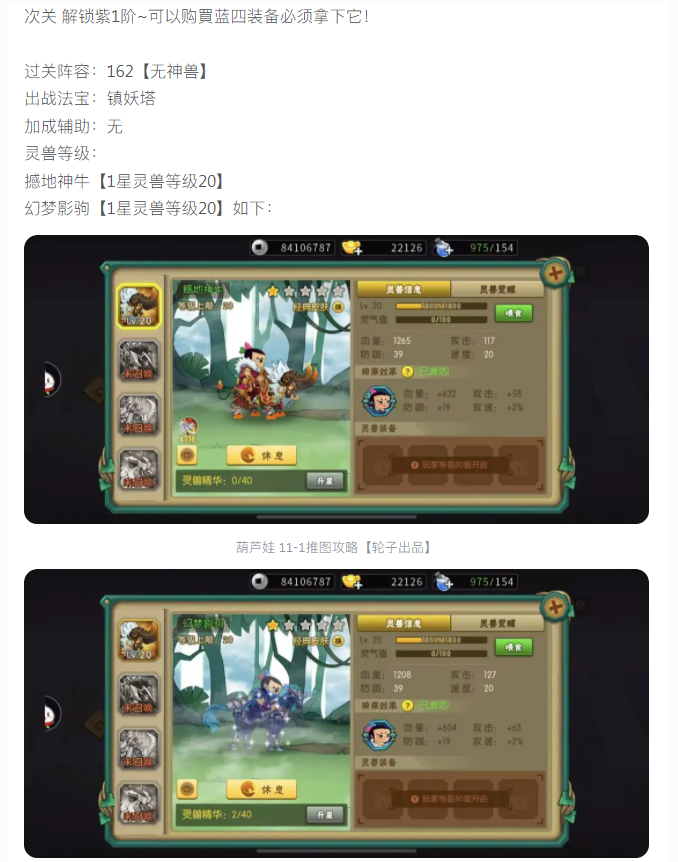 手机游戏> 葫芦娃手游> 游戏新闻> 【攻略分享】11-1推图攻略<162镇妖塔>