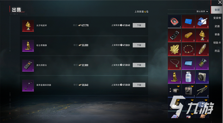 想要出售仓库里的游戏物资或避难所制作的药品到交易行换取地铁币,选定好数量和价格,右下角可以直接上架。上架商品被其他玩家购买后,交易需要扣除一定比例佣金,地铁币会在邮箱当中,每个玩家最多同时上架5件商品,如果48小时内没有人买,会自动下架,但是后续重新上架也是可以的。