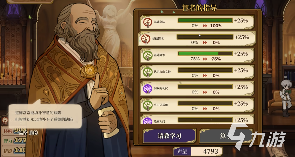 2、 想要专门提升智力属性条的话,可以增加学习任务,同时给女儿给多买几本书放在书柜里也可以增加智慧属性条数值。除了学习之外还可以实践烹饪和拜访智者来提升智慧属性值。