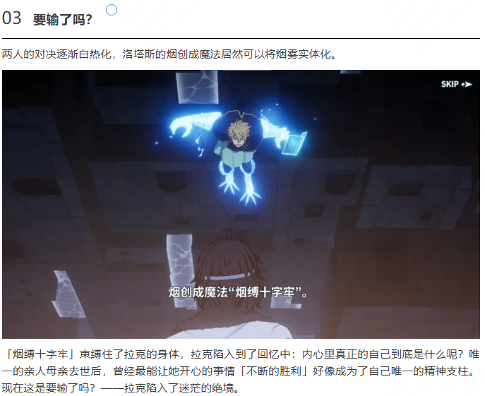 于是,在亚斯塔和诺艾尔的协力下,洛塔斯认输逃跑了。“三人任务小分队”(魔宫任务特别版)也在这次汇合后,准备向着任务目标——「宝物殿」的方向继续进发!