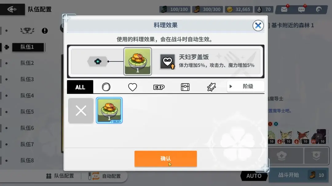进行「队伍配置」的时候可以使用「料理」激活Buff效果。特别注意!战斗失败或是退出战斗时也会消耗掉料理哦!