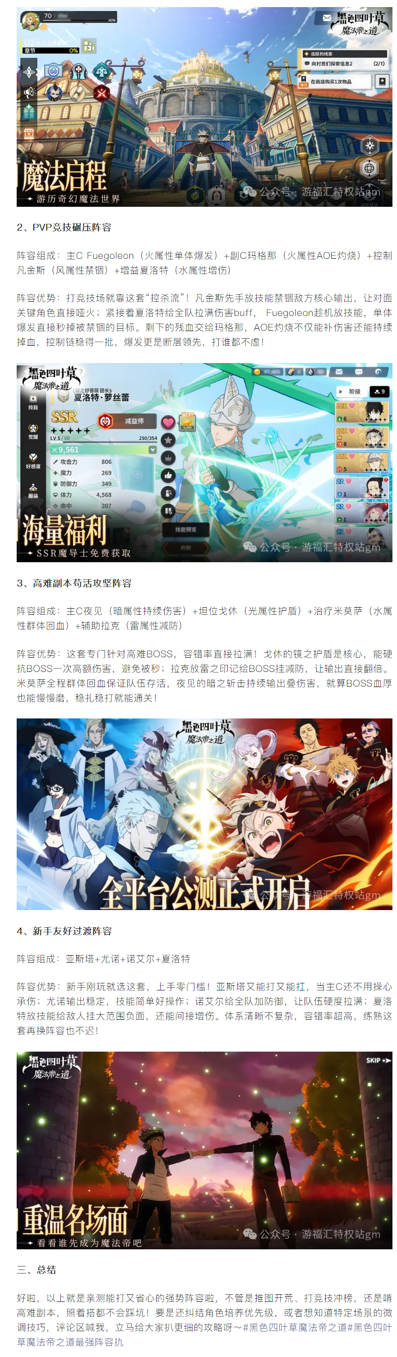 手机游戏> 黑色四叶草手游> 游戏新闻> 【攻略分享】最强阵容推荐,T0阵容搭配攻略