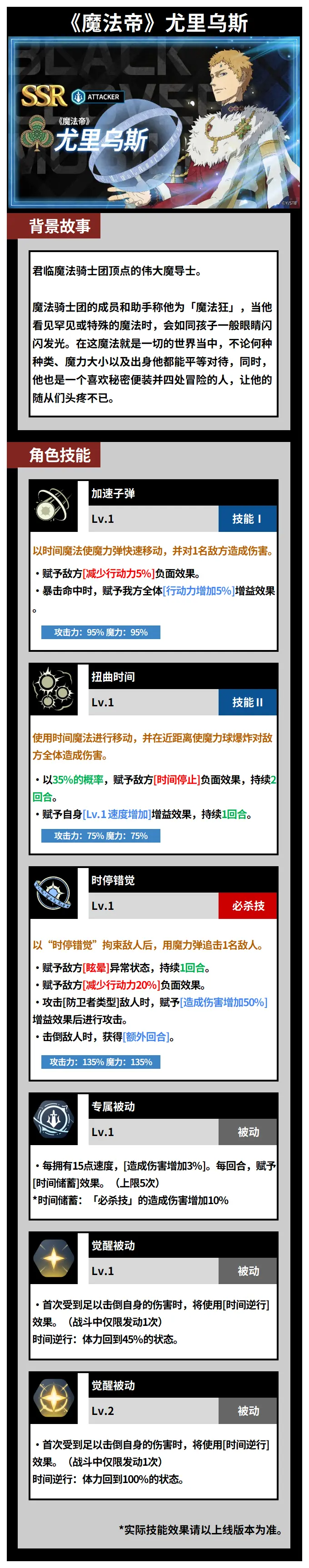 手机游戏> 黑色四叶草手游> 游戏新闻> 【攻略分享】魔导士图鉴 | 《魔法帝》尤里乌斯解析