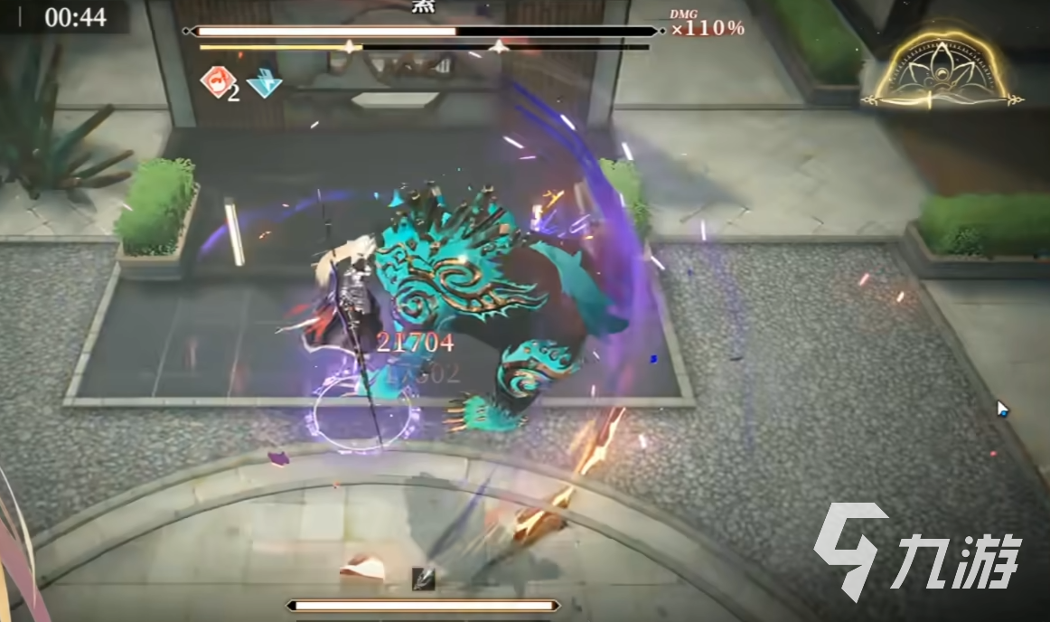 技能1“膝击”,向前冲刺并使用膝撞击攻击敌人造成伤害,并解锁下一段技能“攻歼”,造成常规伤害,短时间内可点按释放“攻歼”,戳刺前方敌人,造成强化伤害,命中敌人可获得1层“枪焰”。