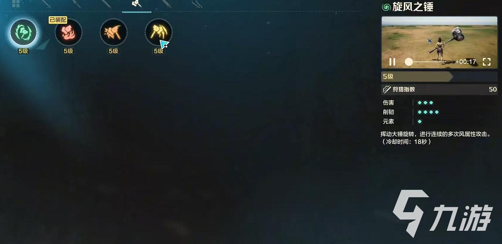 旋风之锤是属于风元素伤害技能,该技能起手比较慢,在使用的时候,玩家会抡起手中的大锤,一边旋转一边攻击,可造成很可观的范围伤害。该技能具有位移和范围打击的特点,在清理周围小怪时非常有效。可以在怪物失去平衡时打出高额伤害,是锤类武器在前期战斗中快速积累优势的可靠技能。