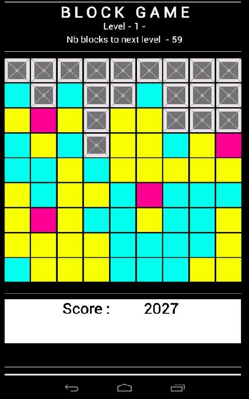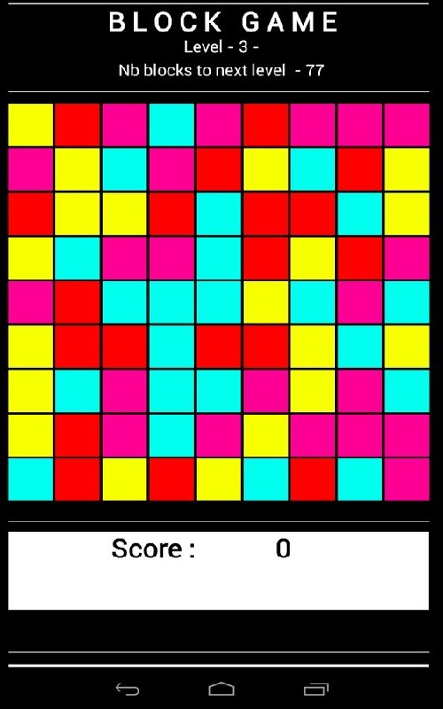A simple puzzle game to play but really hard to finish.A new game logic with a scoring system.Please report any bug you found.The Block Game.Enjoy :D