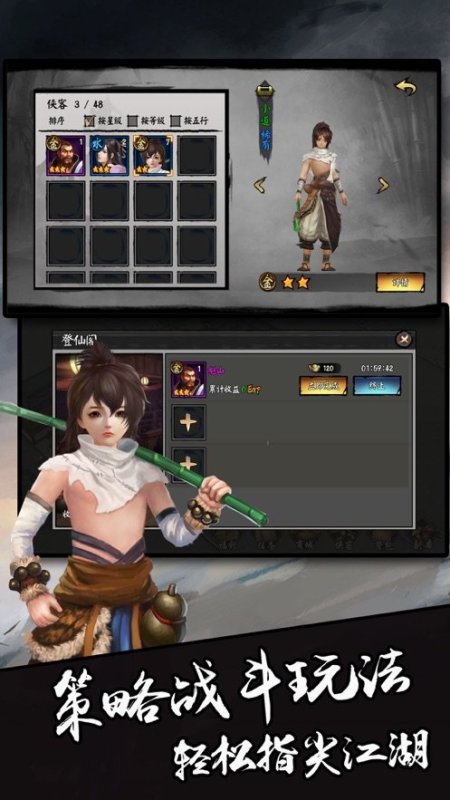何谓江湖是一款武侠题材养成类角色扮演手游。在游戏中,玩家将进入到一个快意恩仇的江湖世界中,你要通过自己一步步的努力,最终成为一代大侠。一开始你可以通过完成一些简单的跑腿任务来获得经验升级,当你达到一定等级后就可以加入不同的门派了。这里有着十八般武器供你选择,感兴趣的话就快来试试吧!