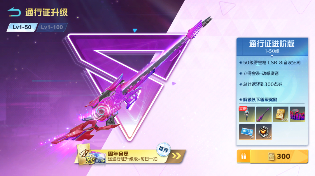 仅需300点券激活50级通行证,再续300点券解锁大通行证,低投入高回报!