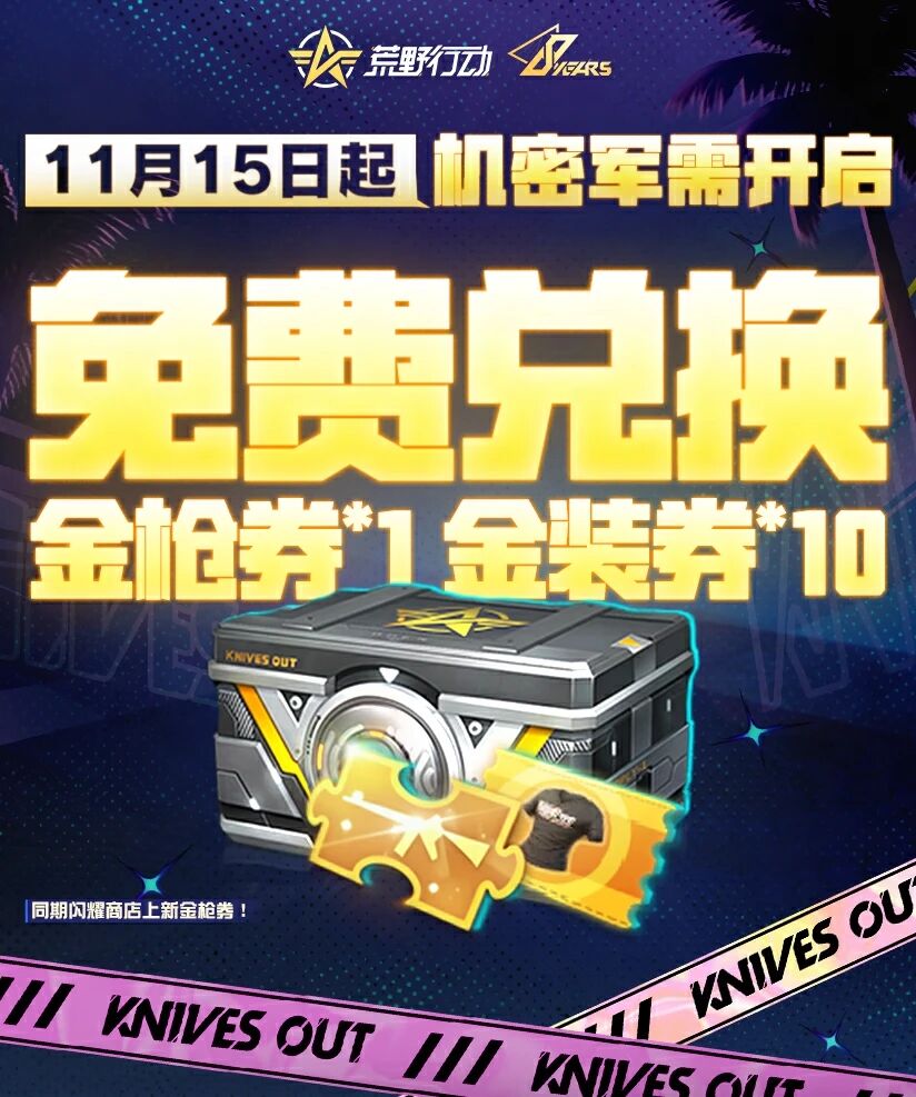 ✨机密军需重磅回归,不仅可兑换往期全部道具,还有【金枪券*1+金装券*10】福利加码!